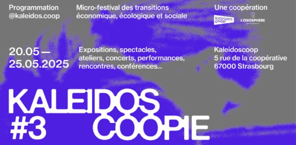 Kaleidoscoopie 3 est de retour ! Le micro-festival des transitions environnementale, sociale et économique, co-construit avec les membres de Kaleidoscoop, L’Ososphère et les forces vives du quartier COOP-Port du Rhin, revient cette année !