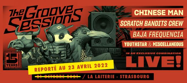 Das Label Chinese Man Records verspricht zum 15. Geburtstag einen Abend voller HipHop, Elektro, Funk, Dub und World. Verschiedene Künstler versammeln sich zum Projekt The Groove Sessions Vol 5 welches im Februar 2020 veröffentlicht wird. Der musikalische und visuelle Abend wird etwas ganz Besonderes und die explosive Stilmischung wird den Saal beben lassen.
