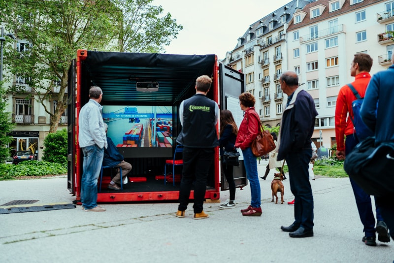Avant de retrouver La Coop pour une nouvelle édition complète de L’Ososphère, elle a arpenté Strasbourg, y posant ses « Machines à Ville » – constructions artistiques et publiques qui jalonnent la ville pour l’augmenter le temps de leur activation et au-delà, par effet de persistance. Pour la première fois, elle s’est posée le temps d’un week-end à Karlsruhe, un peu plus bas sur le Rhin.