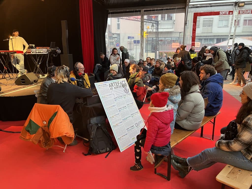 Tout au long de l’année, Artefact œuvre à croiser habitants et habitués autour d’une appropriation partagée du quartier Gare de Strasbourg par le croisement des récits individuels. Ce récit collectif est ainsi fabriqué en permanence, à travers des ateliers et sessions impliquant des artistes, des équipes d’Artefact et animateurs et des structures partenaires du quartier. Ce Radioshow quartier Gare est devenu une tradition du Marché OFF. Il invite en voisins les habitants à ce temps fort et convivial inscrit au cœur de la démarche « aller vers et faire venir » qu’Artefact développe, autour de sa complicité singulière avec le CSC Côté Gare, avec le tissu multi-partenarial du quartier Gare.