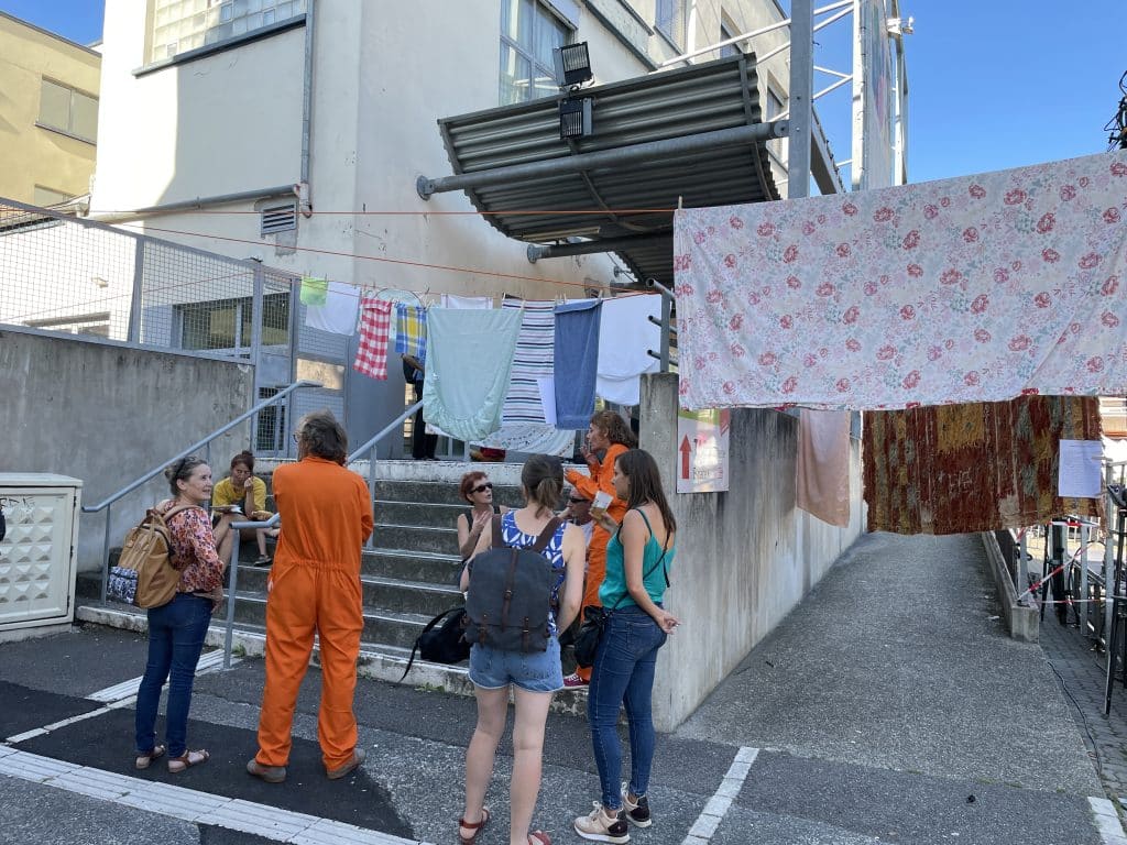 Les habitants du quartier sont invités à apporter leurs plus belles tentures à la Laverie de la Porte de Schirmeck ! C’est avec le collectif d’artistes Les Châteaux en l’Air qu’ils iront ensuite les faire sécher sur un fil tendu entre le Jardin et la rue du Hohwald.