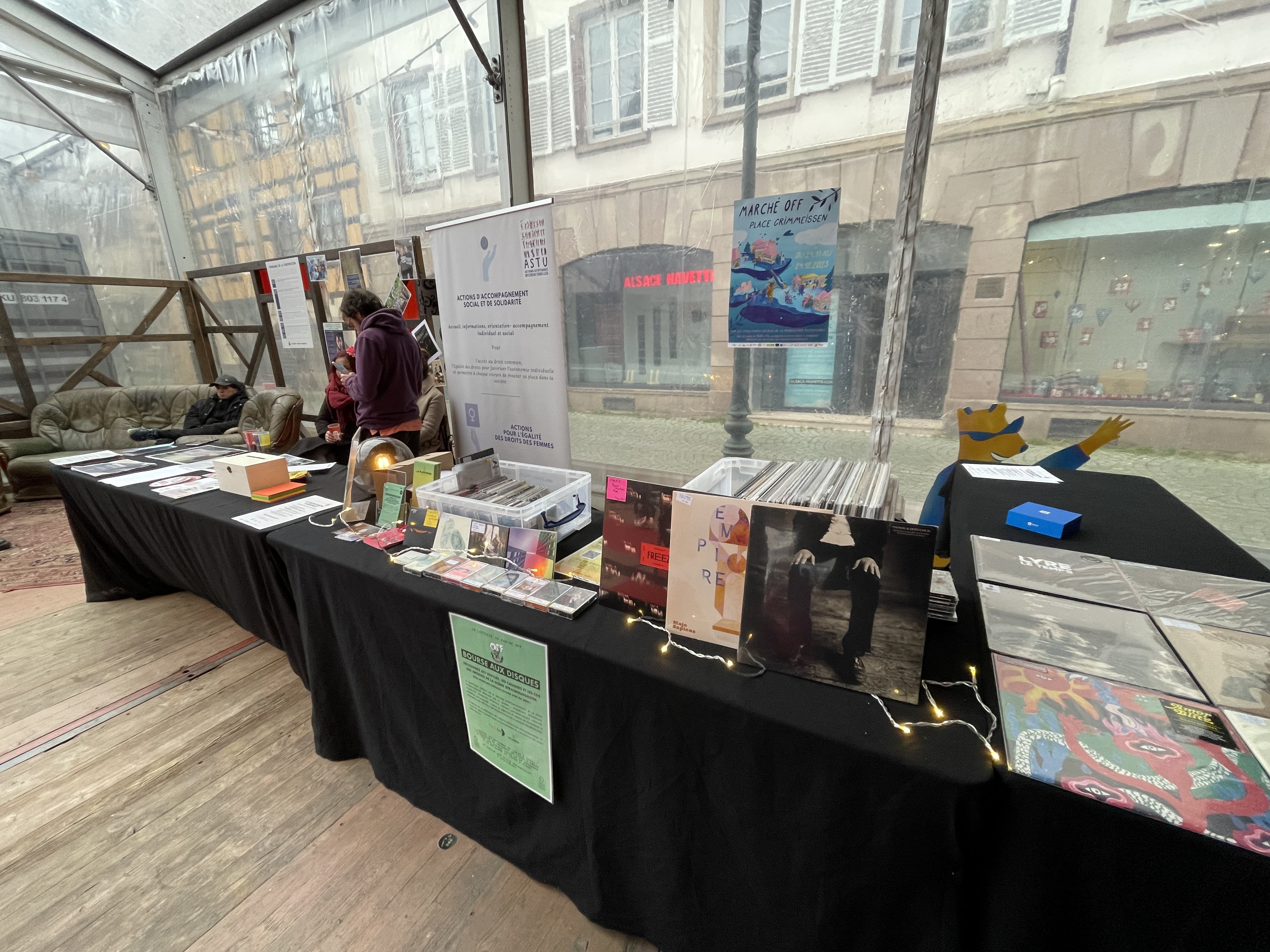 Une bourse aux disque de la scène musicale alsacienne : La Laiterie et La Fédélab se sont associées pour proposer à la vente les disques des artistes et labels de la scène alsacienne, lors du Marché OFF de Strasbourg qui s’est tenu du 24 novembre au 24 décembre Place Grimmeissen à Strasbourg !