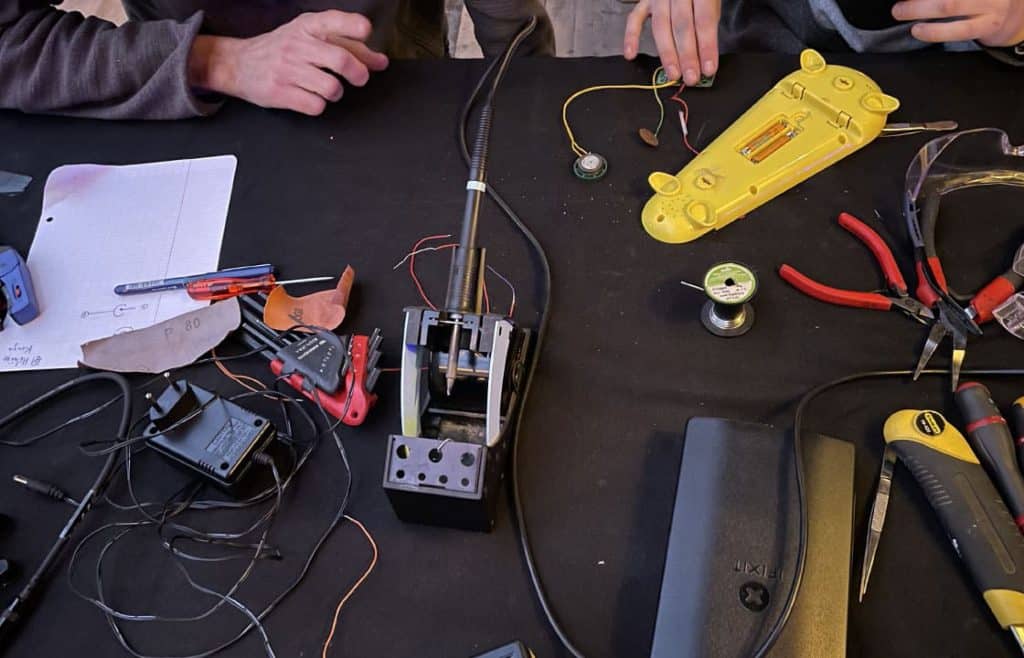 – Un second repair café a eu lieu au Marché Off place Griemmeissen le 8 décembre 2022, deux ateliers « Fabrique te pédale de Fuzz » animés par Jovan Veljkovic ont été organisés en partenariat avec la Grenze, L’Ososphère et Creative Vintage.