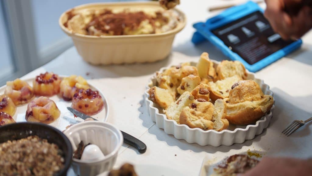 Sur la table, une quinzaine de déclinaisons de Coolglofs concoctés par Sonia Verguet et Pierre Erhrart interrogeaient cette mythique signature d’ici. Cet emblématique moule figurant le paysage urbain accueillait ainsi les recettes proposées par les habitants d’un quartier Laiterie dont l’identité si singulièrement inter-culturelle s’incarnait en provoquant l’appétit collectif. S’y ajoutaient des Kouglofs sonores aussi joyeux qu’électroniques.