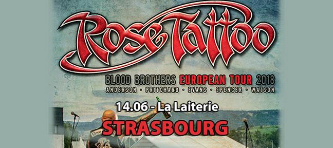 Qui n’a vu Angry Anderson – véritable boule de chair s’arrachant dans un cri de douleur congestionné du tube cathodique – faire irruption sur les écrans de la télévision post giscardienne ne peut imaginer quelle déflagration Rose Tattoo a pu constituer dans la vie de certains adolescents. À l’époque, le nom de la rose fut ainsi particulièrement en vue sur les ignobles musettes US qui, à l’heure de la sonnerie, obstruaient les portes d’entrées des collèges et lycées de notre douce France. N’en déplaise à certains, le véritable retour des années 80, c’est le concert de Rose Tattoo à La Laiterie.