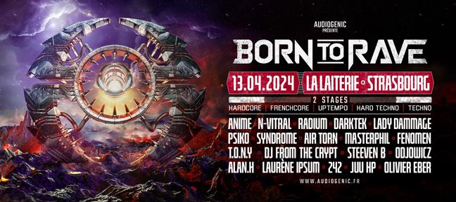 Rassemblant des milliers de passionnés de BPMs musclés aux quatre coins de la France, la tournée Born To Rave revient en force le samedi 13 avril 2024 à La Laiterie à Strasbourg pour une nuit sous le signe de la fête et des musiques électroniques.