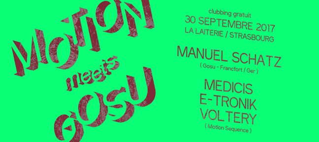 CLUBBING "MOTION meets GOSU" Powered by MOTION SEQUENCE avec MANUEL SCHATZ (GOSU) + MEDICIS + E-TRONIK + VOLTERY (MOTION SEQUENCE) - dans le cadre du Festival scènes d'ici