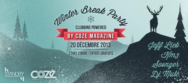 CLUBBING “WINTER BREAK PARTY” powered BY COZE MAGAZINE avec JEFF LIEB (F) + KM3 (F) + SOVNGER ( F) + DJ MUTE (F) + AV EXCITERS CREW (F) - GRATUIT