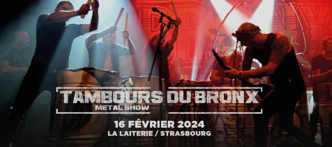 Depuis plus de 30 ans Les Tambours du Bronx donnent un sens à l’expression « art vivant » : l’énergie, le flux, la vie même émane du jeu de cette bande qui, loin de laisser de marbre, fascine et submerge. Leur nombre, leur élan et leurs influences sculptent une musique énergique et tranchante. Depuis leur rencontre en 2011 avec le groupe brésilien Sépultura ainsi que leur création commune en première partie de Metallica, Les tambours ont retrouvé leur premier amour et leur première influence, le métal. Ainsi, leur nouveau spectacle, METAL SHOW, allie à la perfection ce style originel aux sons et voix metal. Un concept unique où gestes et fièvre se mêlent à une chorégraphie où la force s’emballe, où la cadence s’électrise, où les voix se font cris… Le tout dans une cohésion violemment esthétique. Être là, entiers, debouts et battre le fer comme s’ils allaient mourir demain. Et recommencer. L’exhibition des corps s’échauffant dans une mécanique rythmée à la perfection hypnose et le spectacle est cathartique. Le public et Les Tambours du Bronx interagissent, l’un nourrit les autres : le public est leur capital. L’épuisement n’existe plus, chaque musicien agissant, frappant, hurlant, avec l’énergie d’un public transcendé. La musique prend chair et on exulte avec eux.