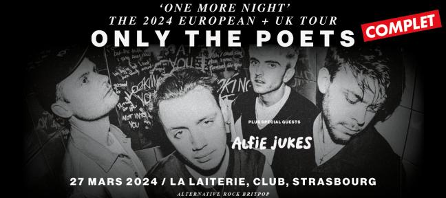 Only The Poets est la nouvelle révélation britpop récemment signée chez EMI qui joue à guichet fermé dans tous les clubs d’Angleterre. Le groupe est enfin de passage en France dans le cadre de sa tournée européenne « One More Night » pour un concert exceptionnel le 27 mars 2024 à La Laiterie de Strasbourg !