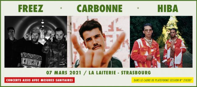 Moderner Rap und HipHop aus der Region. Freez tritt so cool auf wie der Name es schon sagt. Als gebürtiger Amerikaner verschmischt er seine Eindrücke vom Elsass mit New York. Carbonne versteht sich auf Wortspiele und begeistert damit sein Publikum. Hiba sind zwei Brüder mit Wurzeln in Tunesien. Aufgewachsen in Strasburg mit Beziehungen zu den deutschen Nachbarn sind sie Meister des Flows, der Visionen und der Melodien.