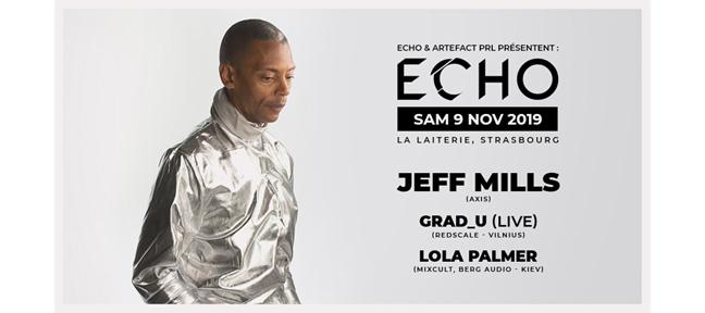 Le samedi 9 novembre 2019, JEFF MILLS est de retour à Strasbourg pour ECHO. Pionnier du mouvement TECHNO de Detroit, membre fondateur de Underground Resistance, auteur d’innombrables hits planétaires dont « The Bells », il est un véritable artiste pluridisciplinaire considéré par beaucoup comme un des meilleurs DJs au monde. LOLA PALMER, une des meilleures DJs Deep-Techno d’Europe ainsi que GRAD_U, live survitaminé mêlant Acid, Techno & Dub dont on va beaucoup entendre parler dans les prochains temps rejoignent le line up.
