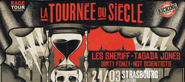 Vier französische Punkacts gehen gemeinsam auf die Tour des Jahrhunderts. Tagada Jones aus der Bretagne steht seit 1993 auf der Bühne. Les Sheriff aus Südfrankreich gelten als Gründer der Punkszene in unserem Nachbarland. Dirty Fonzy gibt es erst seit rund zwanzig Jahren, und No Scientist aus Lyon punken gar erst seit einem Jahrzehnt. Ihre Musik ist beeinflußt von post-punk wave.