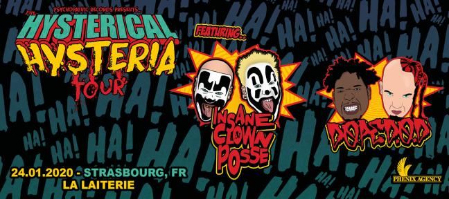 Artefact PRL vous informe que le concert de INSANE CLOWN POSSE + DOPE D.O.D initialement prévu le 24 janvier 2020 est ANNULE. En effet, nous venons malheureusement d’apprendre que, pour raison médicale, Insane Clown Posse ne pourra se rendre en Europe pour sa tournée prévue dès la semaine prochaine. Toute la tournée Européenne est par conséquent annulée, y compris Le concert prévu à La Laiterie le vendredi 24 janvier 2020.