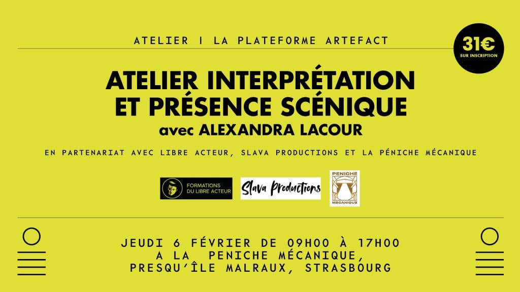 Organisé en partenariat avec les Formations du Libre Acteur et Slava Productions, cette journée sera animée par Alexandra Lacour, comédienne et chanteuse professionnelle.
