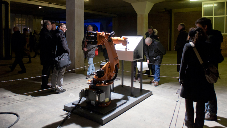 Un robot offre un service inhabituel. Le stylo à la main, il dessine le portrait d’un humain. Un chevalet est placé face au robot et une chaise attend son modèle. Une fois un visiteur installé, l’artiste-machine commence à travailler. Le robot crée son propre style et l’image qui en résulte est individuelle et imprévisible. Une fois le dessin terminé, le robot efface le tableau blanc de sa propre main. Sans pitié, la machine ne laisse aucune trace de la personne qui s’est assise face à elle, qui doit assister à l’effacement de l’image. Dans Autoportrait, la machine et le visiteur sont placés dans la relation de portraitiste et modèle, d’artiste et de sujet. Bien que l’acte de création provienne de la machine, la fonction d’image-reproduction est en elle-même une image de créativité humaine.