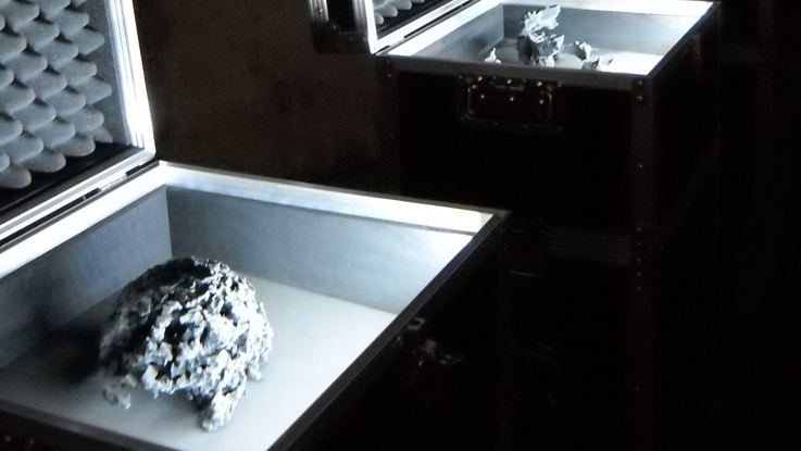 « Une manière de fossiliser, de pétrifier les émotions et de prolonger dans le champ poétique cette imagerie scientifique », explique l’auteur. Ici installée, elle incarne la fonction de « réceptacle des émotions de la ville » que ce bâtiment a pris à nos yeux à force de le fréquenter.