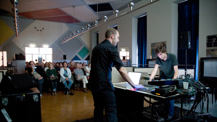 Concatenative Mu est le fruit d’un nouveau dispositif de rencontre entre les musiciens Vincent Epplay et Sébastien Roux, lesquels collaborent régulièrement pour des concerts en multi diffusion : commande du GRM, concerts à la Maison de la Radio de Paris, au CIO Berlin, au Transpalette à Bourges… ici placés face à face au centre d’un dispositif sonore en quadriphonie, les deux musiciens proposent un croisement du drone, de la musique concrète et de la « bloop-bleep-music »… le concert ponctué de séquences filmiques réalisées par Vincent Epplay et où il sera fait appel, si nécessaire, à Bruce Lee et Pierre Boulez.