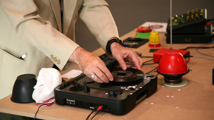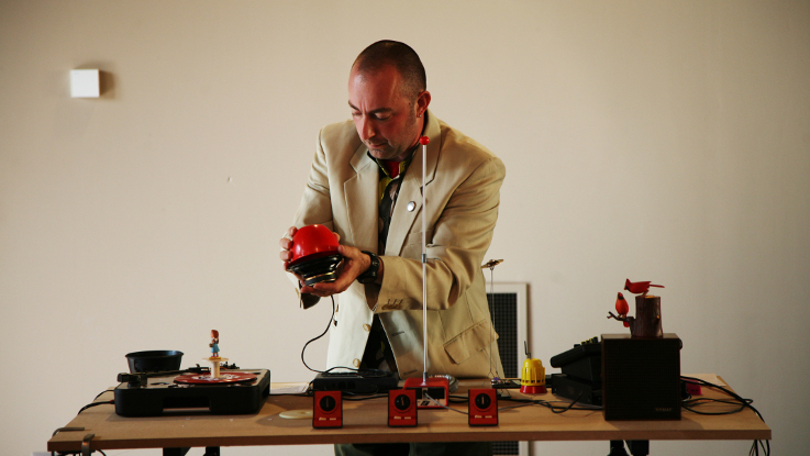 Nous avons proposé à Thierry Weyd d’investir un espace du Musée Historique pour y « déployer » son dispositif miniature de concert. À travers des manipulations de sons acoustiques, électroniques et d’objets divers, ce dispositif volontairement modeste oscille entre concert acoustique et théâtre d’objets ; « en quelque sorte de la musique de chambre à jeux pour amateurs de curiosités audiovisuelles. »