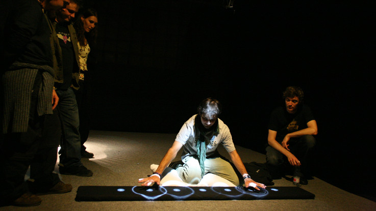 Harmony of Light est une installation interactive mettant en jeu le son et la lumière pour aborder à la fois la méditation orientale et les sensibilités de l’Occident aux choses du Sacré. En déplaçant ses mains sur un tissu de velours, le spectateur interagit avec les lumières pour générer et moduler des voix dont la machine vient compléter l’harmonie sur le modèle de la musique pour chant choral (Soprano, Alto, Tenor et Basse).