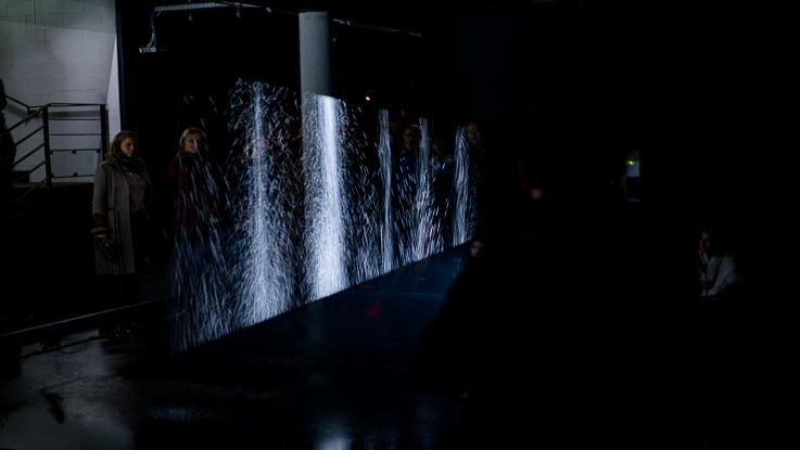 Dans sa pratique artistique, Urbrain poursuit une quête : séparer l’image de son support, écran ordinateur, vidéoprojections ou diaporamas. C’est ainsi qu’il a croisé les recherches de LABo des Fées, animé par Erik Lorré, qui explore également ces différents supports par la programmation visuelle et sonore en temps réel synchronisée avec des actions physiques pilotées par ordinateur. En combinant leurs recherches respectives et leurs univers, ces deux artistes explorent ici la technique de projection d’images sur des gouttelettes d’eau. Dans Image Latente, l’eau offre sa matérialité et sa poétique à l’écriture d’un environnement immersif et interactif pour faire naître un objet qui compose avec la lumière dans une lévitation plastique et par instants irréelle.