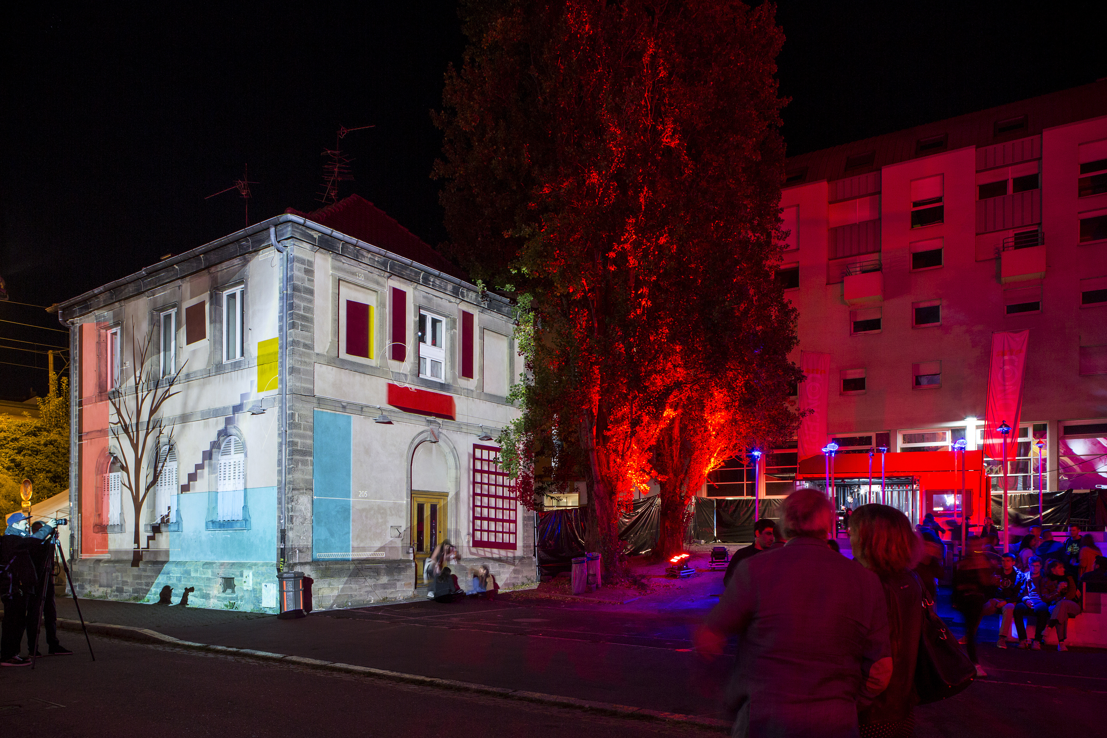Une architecture habitée par l’image, refuge des habitants d’un soir, lieu de rassemblement et d’observation, une parenthèse visuelle impromptue et réconfortante.
