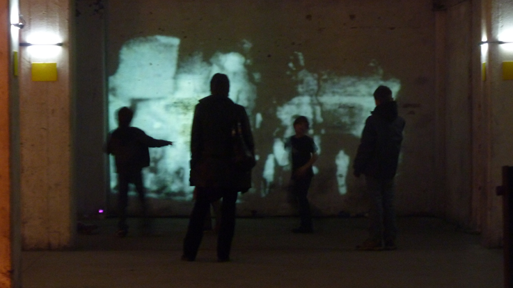 « Blanches et translucides, informes et toujours mouvantes, ces formes circulent avec une grâce nerveuse dans un ballet fluide et incessant. Les infrarouges relient les gens et les choses : ce sont les forces à l’œuvre. C’est leur royaume que nous voyons dans le miroir. Le monde contemporain est marqué par la complexité et par la multiplicité des courants de forces plus ou moins invisibles qui l’animent. L’installation Le Royaume des infrarouges propose l’existence de forces invisibles mais réelles autour du spectateur, par un dispositif simple et immédiatement lisible. » Traitant ainsi des forces derrière les formes, cette installation renvoie le spectateur aux forces qui l’animent, visibles ou non, conscientes ou non. Où d’autre que dans ce réceptacle des métaphysiques de la ville pouvait-elle mieux prendre place ?