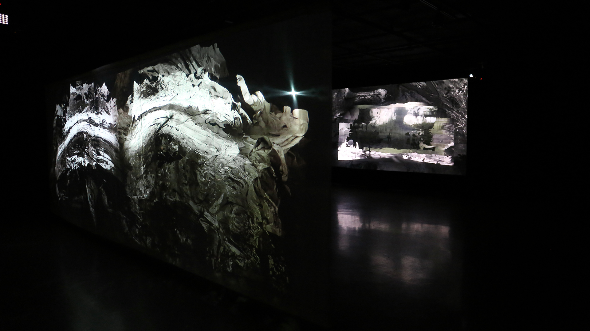 L’installation Monade propose de croiser deux conceptions : celle de l’image-monde fenêtrée et celle de l’image-sensible close sur elle-même. Cette installation multi-écrans, à la fois conceptuelle et profondément sensorielle, immerge le spectateur dans un flux d’animations et de projections lumineuses.