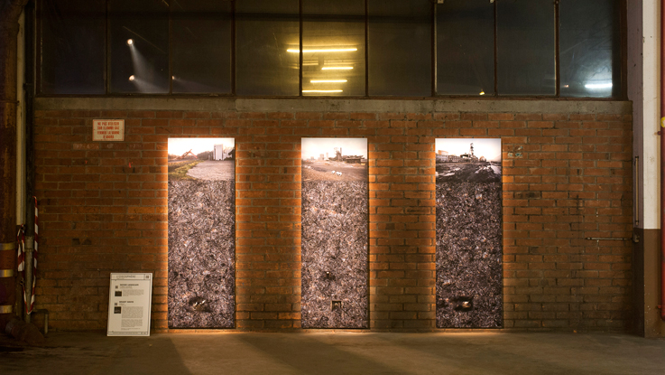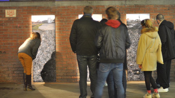 Dans un geste photographique au format troublant, Nicked Landscape considère les paysages miniers pour assembler dans un même regard la partie visible d’un paysage avec son support, invisible dans sa profondeur, la terre. Ici installé in situ, au cœur de ce territoire industrieux que L’Ososphère habite, Nicked Landscape évoque l’activité du Port que l’on aperçoit en tournant les yeux et celles qui y sont connectées.