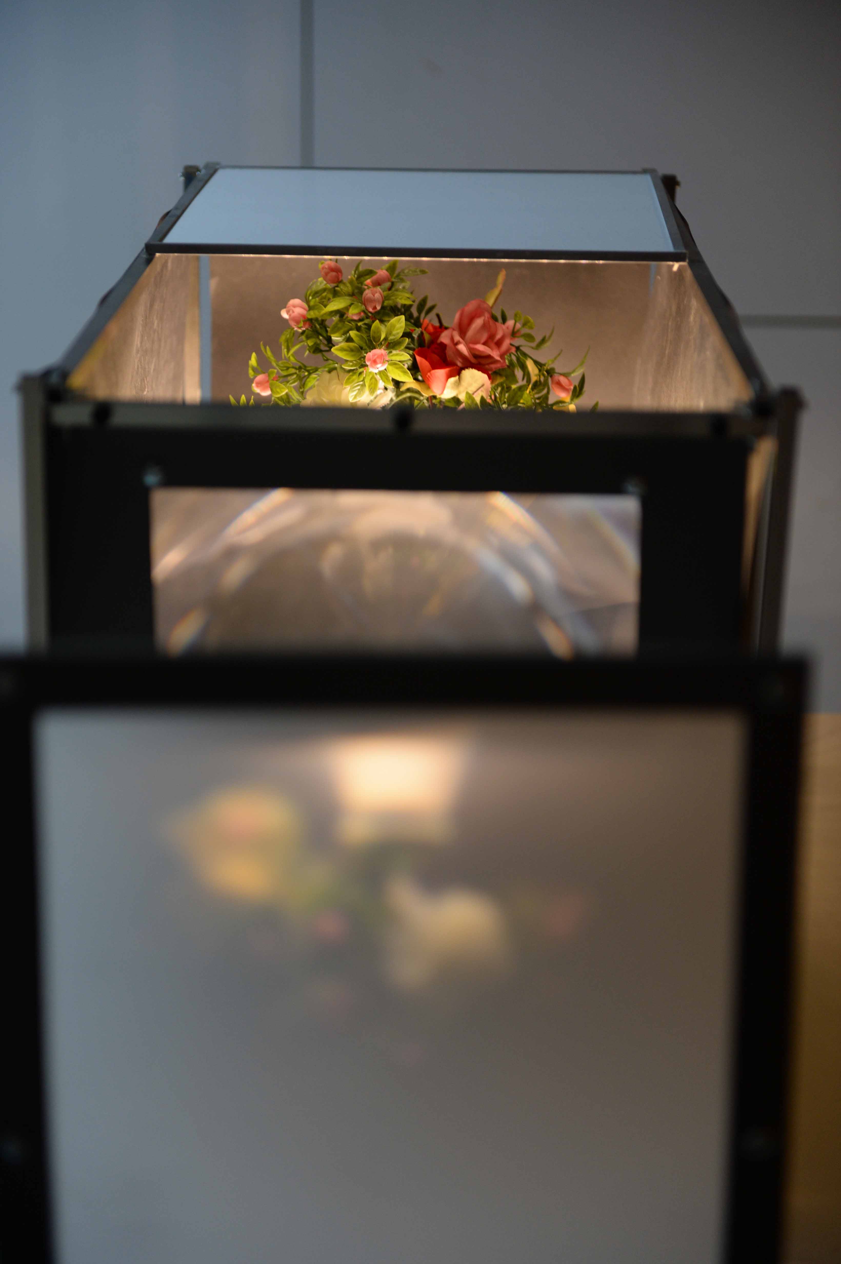 Il s’agit d’une machine à projeter des objets en direct. L’image est générée dans l’actuel, à la vitesse de la lumière. La confusion entre un objet et son image n’existe plus. L’objet à une relation à son image comparable à celle qu’il aurait à son ombre.