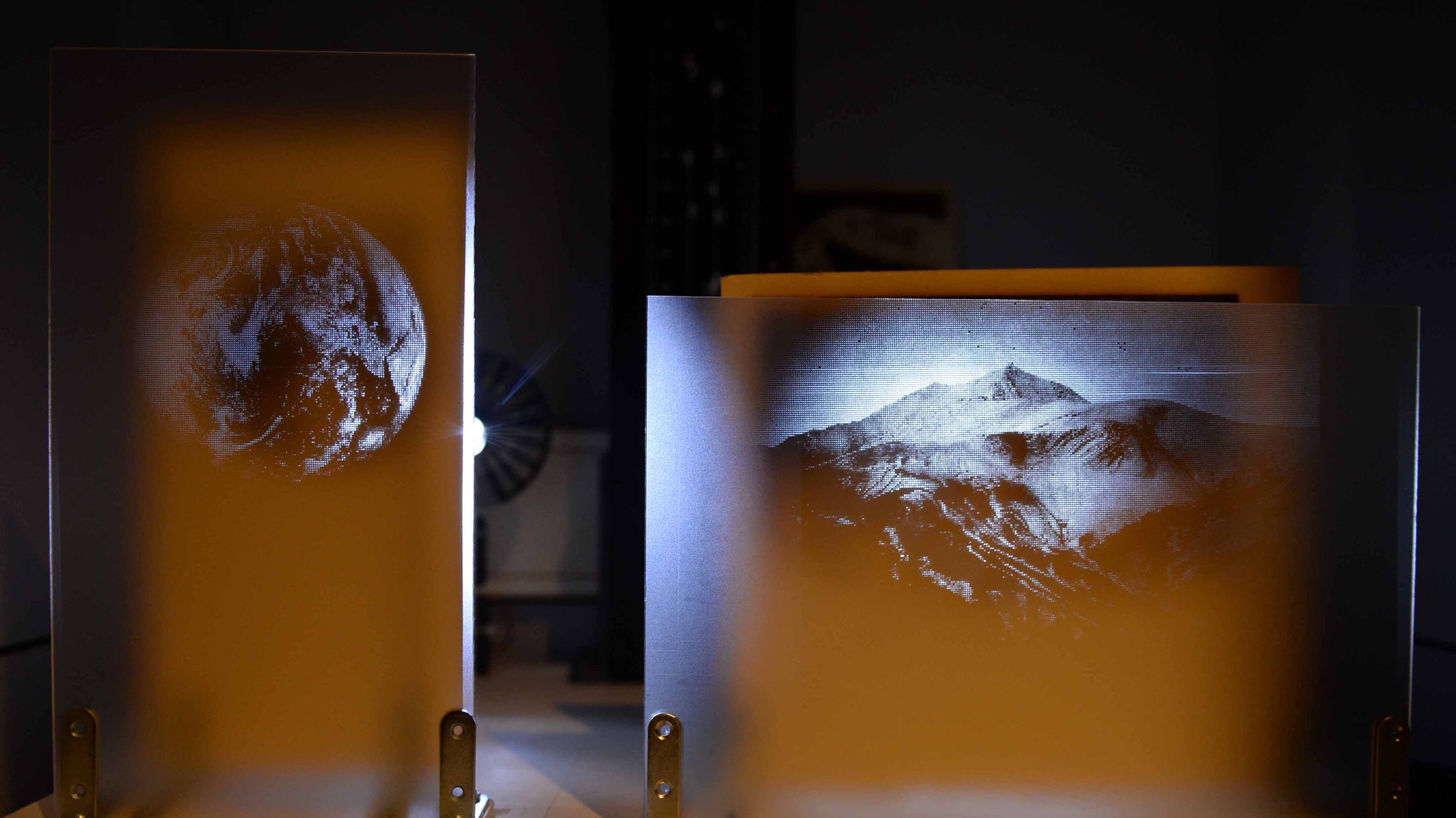 Le perfogramme est une technique d’enregistrement d’image inventée par l’artiste qui inclut le visuel dans la matière, à la manière d’une diapositive découpée. Par projection de ces images perforées, une nouvelle matérialité de ce qu’elles représentent apparaît.