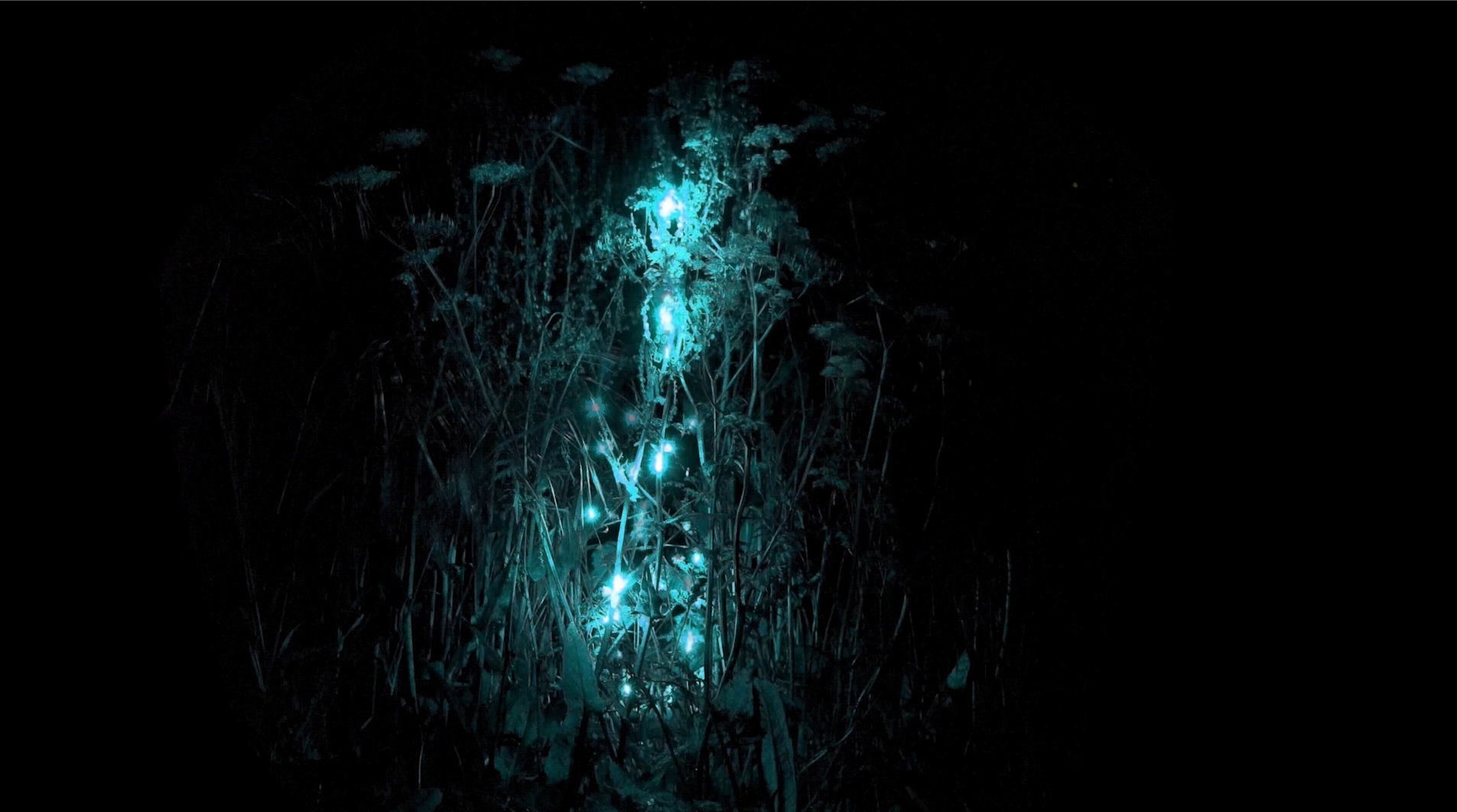 Persistance est une projection. Découvrez des images de végétaux ou de paysages réalisés la nuit en extérieur, perçus à travers le balayage d’un petit point très lumineux (pointeur laser vert) qui a été multiplié et superposé. Plusieurs points de vue ont été réalisés, de la clairière en passant par le talus de végétaux, jusqu’à la mise en avant de plantes.