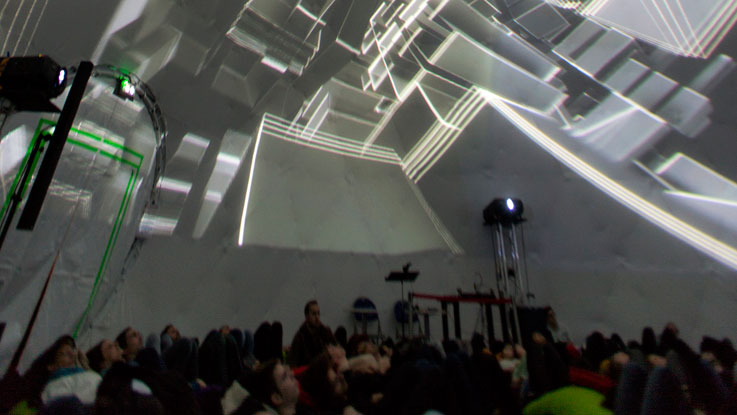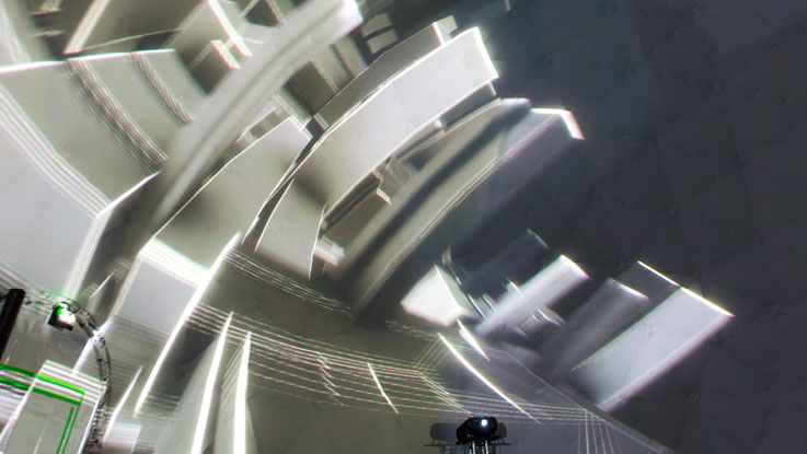 QUANTUM est une installation immersive de 1024 Architecture proposant une singularité numérique provoquée par l’entre-choc de quark-pixels, particules élémentaires constituant l’imaginaire de grandes théories de la physique et du cosmos.