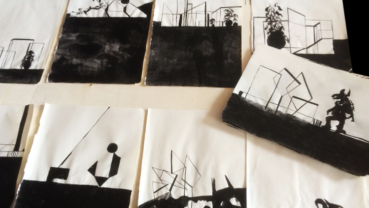 Rain again est un ensemble en cours de constitution de dessins et vidéo réalisés lors d’un voyage virtuel en Google Street le long du Rhin, de sa source à son embouchure. Ce travail sédentaire, interroge le nomadisme. Les dessins à l’encre et aquarelle représentent le paysage mental et virtuel que l’artiste perçoit dans les paysages presque idéalisés – pas de nuit, pas d’humains – proposés par Google Street.