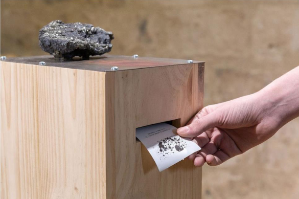 Le visiteur du Cosmos District est invité à poser la main quelques secondes sur un capteur tactile connecté à une météorite. Il reçoit alors un message qui lui est spécialement dédié, texte aléatoire généré au gré des fluctuations d’ondes radio en provenance du cosmos. Avec Recombinaison, dérivé de l’installation This is Major Tom to Ground Control (2012), c’est la présence du visiteur qui fait parler l’Univers ! Le contact de sa main avec cet objet autrefois présent dans l’espace interplanétaire permet, à un instant T, de générer cette « poésie spatiale ».