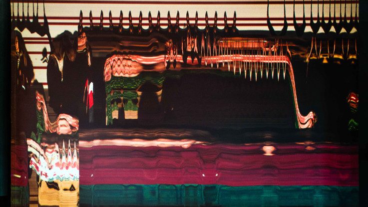 Basée sur la technique des appareils photofinish*, Slow down est une installation vidéo interactive pour espace de déambulation. Une caméra filme l’espace, invitant le passant à alanguir sa course pour pouvoir apparaître et découvrir une image où l’environnement immobile est traduit en bandes horizontales, au milieu desquelles la représentation déformée de son corps prend place. Par lents passages successifs, le visiteur peut alors jouer avec son image et découvrir des postures visibles uniquement grâce à l’œil de la machine. C’est ici le temps qui fabrique l’image de la dérive poétique de nos corps dans l’espace de la ville.