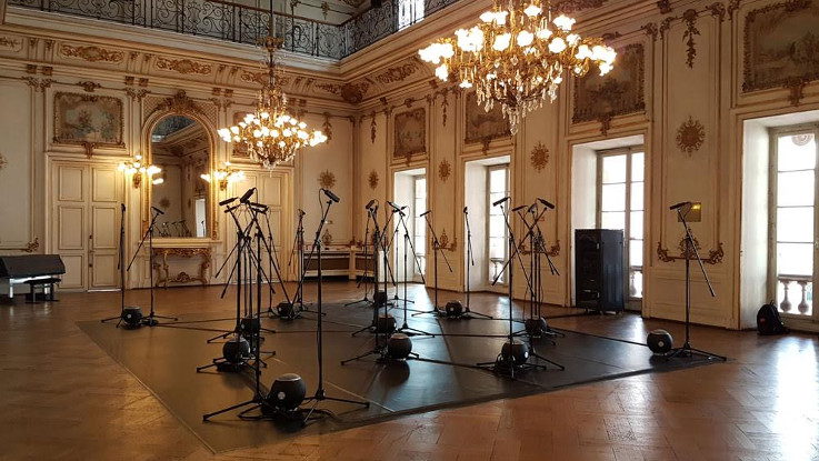 Dans un espace semblable à un studio de musique déserté, la présence des spectateurs fait apparaître le son d’un orchestre symphonique qui s’accorde, instrument par instrument, mais ne s’arrête jamais : le son demeure en suspens, naissant et disparaissant au gré du comportement des visiteurs. D’autres personnes pourraient entrer, la musique pourrait commencer, mais elle reste au seuil. Dans cette relation en miroir entre les visiteurs et les musiciens absents, on expérimente l’émergence d’une présence collective, à travers l’archétype qu’en constitue un orchestre.