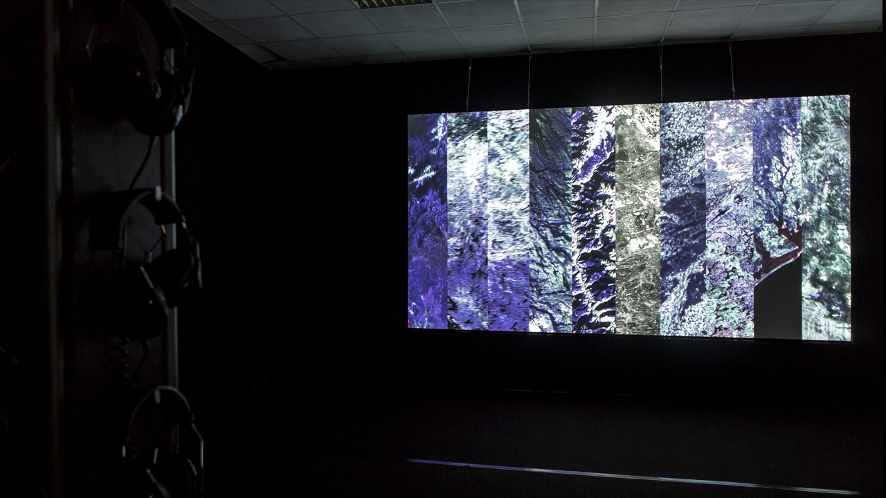 Un ordinateur relié au vidéoprojecteur se connecte automatiquement à un satellite qui survole le territoire, et projette ce qu’il « voit ». Supraspectives vient ici ramener au cœur de l’exposition les never-ending travelling qui nous survolent pour documenter le spectacle de La Terre que l’époque installe dans un vertigineux cliffhanger.