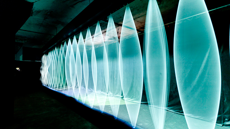 Se jouant des capacités de l’œil humain à reproduire fidèlement le réel, l’installation Tripwire invite le spectateur à manipuler les objets temporels. Mouvements des cordes, vidéoprojections et espace sonore y sont synchronisés pour faire émerger un écran vivant, interface entre ceux qui structurent notre quotidien et ceux, intimes et singuliers, que nous développons pour y déployer notre cinéma intérieur.