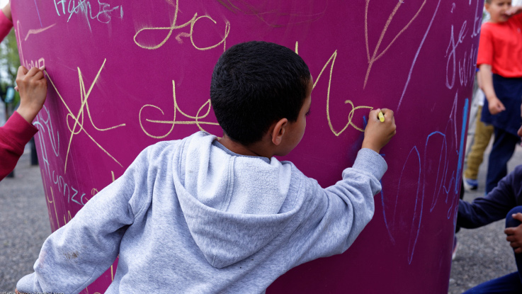En amont de la performance MIO, épilogue à La Coop, cet atelier explore la notion de « public complice » et permet aux enfants d’avoir les codes pour interagir avec la compagnie dans le jeu théâtral et dans la pratique du dessin urbain. Ils peuvent ainsi répondre de manière active et personnelle aux sollicitations que les acteurs font au public : ils deviennent des spectateurs avertis et prennent une part active à l’événement.