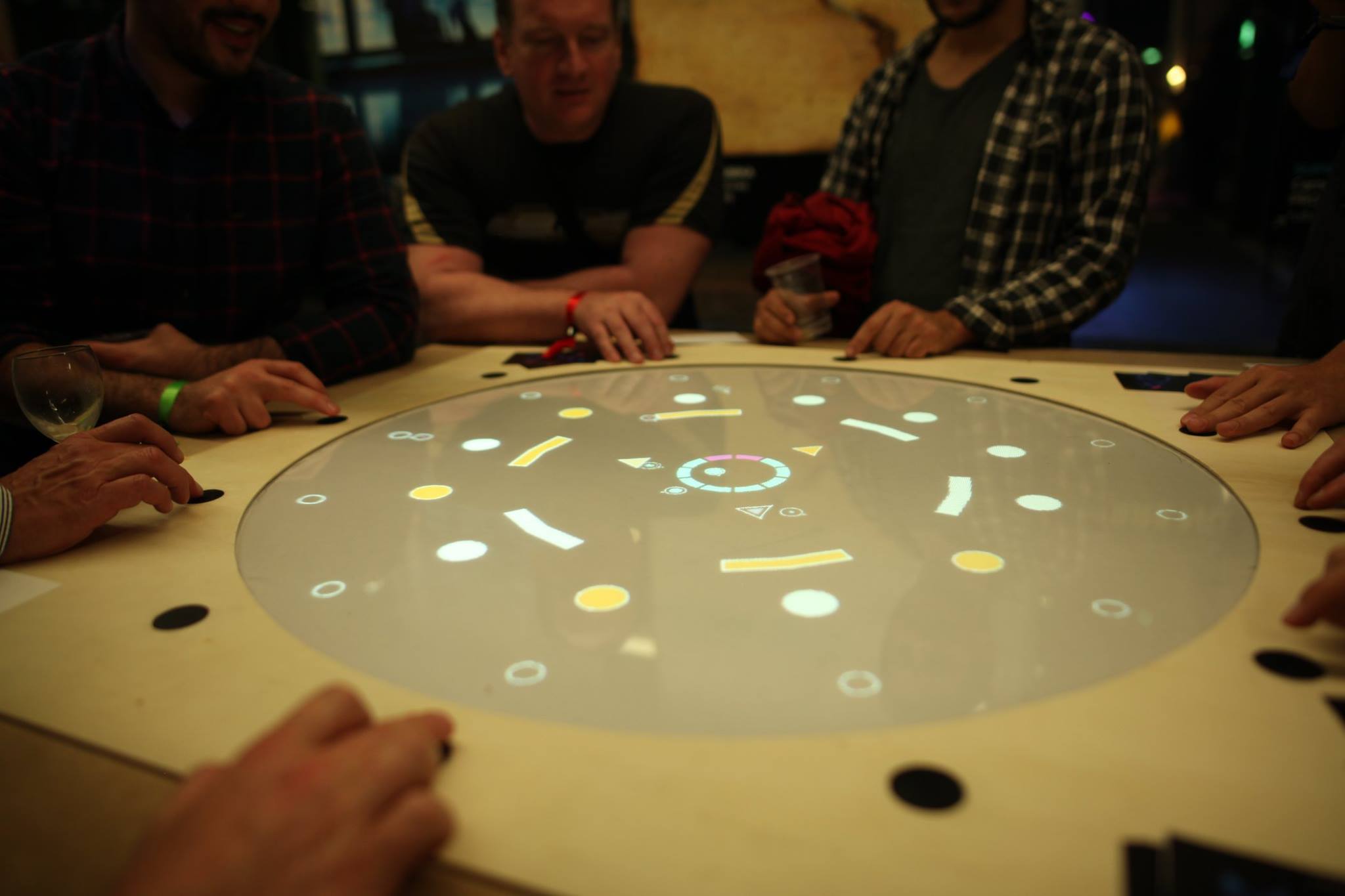 [yojün] est un contrôleur alternatif proposant un écran circulaire et douze boutons en peinture conductive, permettant de réunir jusqu’à douze joueurs de tout âge pour jouer. Plusieurs jeux explorant l’univers des one button games (un seul bouton par joueur) sont disponibles, chacun pouvant être compétitifs ou coopératifs, afin d’offrir un large panel d’expériences.